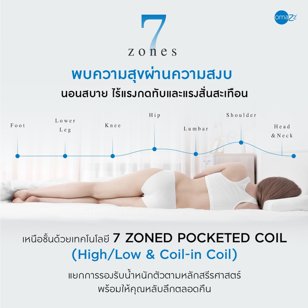 ความสงบสุขแห่งการพักผ่อนที่ Omazz® ส่งมอบเพื่อให้คุณได้เข้าถึงสมดุลแห่งธรรมชาติกับที่นอนรุ่น Flawless โดยการรองรับน้ำหนักในโครงสร้าง Pocketed Coil® พ็อกเก็ตสปริงคุณภาพที่คัดสรรมาอย่างดีสำหรับการพักผ่อนที่ดีที่สุด ที่นอน Omazz® รุ่น Flawless จัดวางลูกสปริงอย่างอริสระ เน้นการโอบรับสรีระและช่วยกระจายน้ำหนักแบบองค์รวม 360 องศา มอบความแน่นแต่สบายผ่อนคลายทุกสัดส่วนของร่างกาย ตรงสัมผัสห้วงนิทราอย่างอ่อนโยนปราศจากสารเคมีด้วย Organique Foam พร้อมโครงสร้างรูระบายอากาศ หลับเย็นสบายตลอดคืน ลดเหงื่อและอัตราการพลิกตัวได้อย่างดีเยี่ยม ยกระดับการกระจายน้ำหนักพร้อมทั้งดูดซับแรงสั่นสะเทือนเพื่อมอบการพักผ่อนอันสมบูรณ์แบบในทุกค่ำคืน |