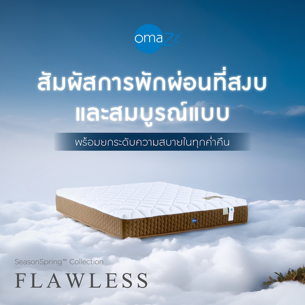 ความสงบสุขแห่งการพักผ่อนที่ Omazz® ส่งมอบเพื่อให้คุณได้เข้าถึงสมดุลแห่งธรรมชาติกับที่นอนรุ่น Flawless โดยการรองรับน้ำหนักในโครงสร้าง Pocketed Coil® พ็อกเก็ตสปริงคุณภาพที่คัดสรรมาอย่างดีสำหรับการพักผ่อนที่ดีที่สุด ที่นอน Omazz® รุ่น Flawless จัดวางลูกสปริงอย่างอริสระ เน้นการโอบรับสรีระและช่วยกระจายน้ำหนักแบบองค์รวม 360 องศา มอบความแน่นแต่สบายผ่อนคลายทุกสัดส่วนของร่างกาย