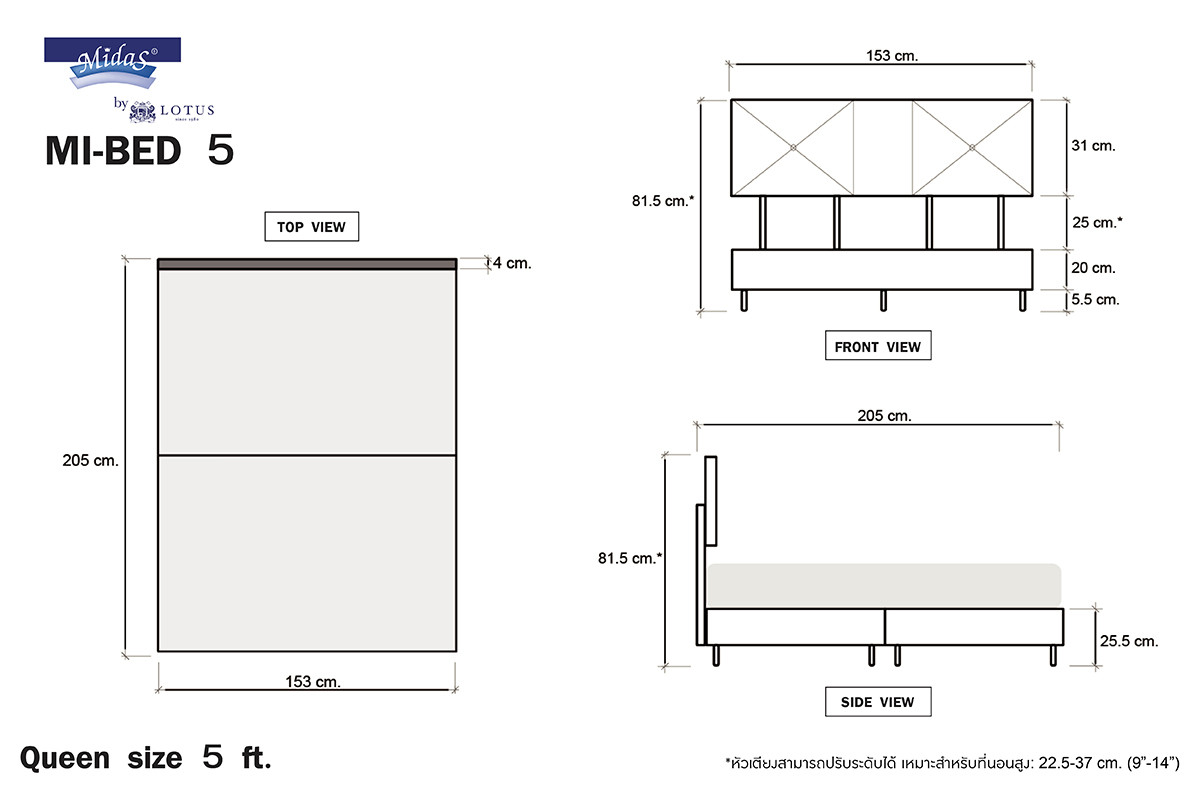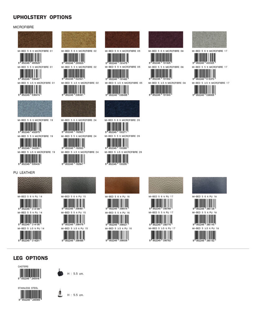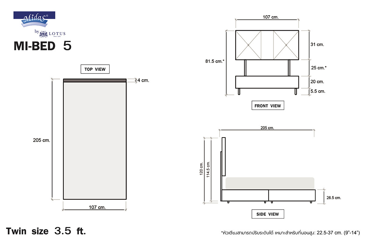 เตียงนอน รุ่น Mibed 5 จาก MIDAS ที่มาพร้อมกับความเรียบง่ายของรูปทรงที่ทันสมัย ด้วยผ้าหุ้ม Microfibre นำเข้า พร้อมสีสันให้เลือกหลากสีเหมาะกับทุกบรรยากาศของห้องนอนคุณ มีทั้งหมด 3 ขนาด ได้แก่ 3.5 ฟุต, 5 ฟุต, 6 ฟุต