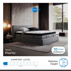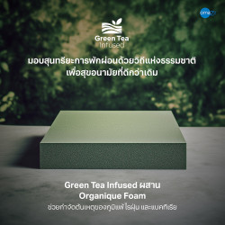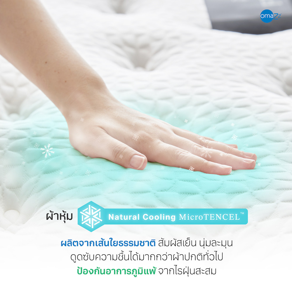 ของขวัญล้ำค่าจากธรรมชาติที่ผ่านการรังสรรค์ด้วยความประณีต ออกแบบและถักทอทุกรายละเอียดเพื่อการนอนหลับที่สมบูรณ์แบบ ที่นอน Omazz รุ่น Floritz รองรับน้ำหนักด้วยระบบสปริง Omazz Pocketed Coil® ให้สัมผัสแห่งการนอนหลับนุ่มนวลยิ่งขึ้น และช่วยลดแรงสั่นสะเทือนทุกการเคลื่อนไหว เพิ่มชั่วโมงนอนหลับที่สัมผัสถึงความสบายกับ LatexLux มอบสัมผัสที่ยืดหยุ่นเหนือกว่ายางพาราทั่วไป สามารถรองรับสรีระร่างกายได้ทุกสัดส่วนอย่างดีเยี่ยม ผ่อนคลายอย่างต่อเนื่องและนอนหลับได้ลึกยิ่งขึ้นกับ Organique Foam – Green Tea Infused ช่วยกระจายน้ำหนักได้ดี พร้อมสารสกัดจากชาเขียวที่ช่วยลดอนุมูลอิสระบนพื้นผิวที่นอน ซึ่งเป็นต้นเหตุของกลิ่นอับชื้น ทำให้ปราศจากกลิ่นไม่พึงประสงค์ และยังช่วยยับยั้งการเจริญเติบโตของไรฝุ่นและแบคทีเรีย