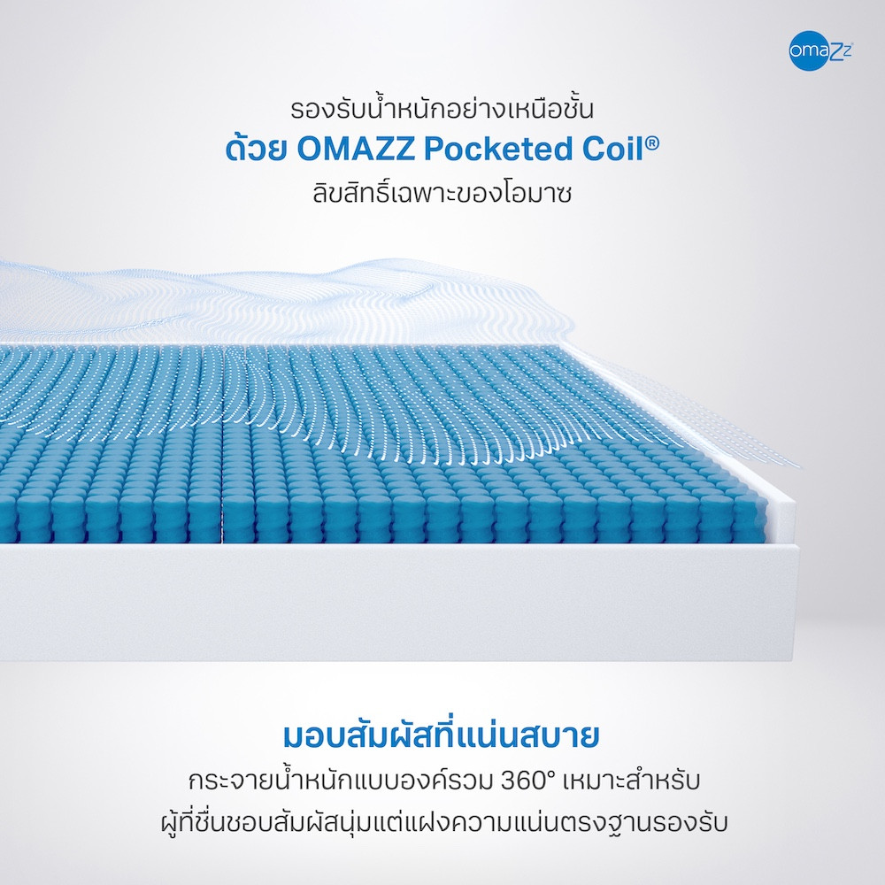 ของขวัญล้ำค่าจากธรรมชาติที่ผ่านการรังสรรค์ด้วยความประณีต ออกแบบและถักทอทุกรายละเอียดเพื่อการนอนหลับที่สมบูรณ์แบบ ที่นอน Omazz รุ่น Floritz รองรับน้ำหนักด้วยระบบสปริง Omazz Pocketed Coil® ให้สัมผัสแห่งการนอนหลับนุ่มนวลยิ่งขึ้น และช่วยลดแรงสั่นสะเทือนทุกการเคลื่อนไหว เพิ่มชั่วโมงนอนหลับที่สัมผัสถึงความสบายกับ LatexLux มอบสัมผัสที่ยืดหยุ่นเหนือกว่ายางพาราทั่วไป สามารถรองรับสรีระร่างกายได้ทุกสัดส่วนอย่างดีเยี่ยม