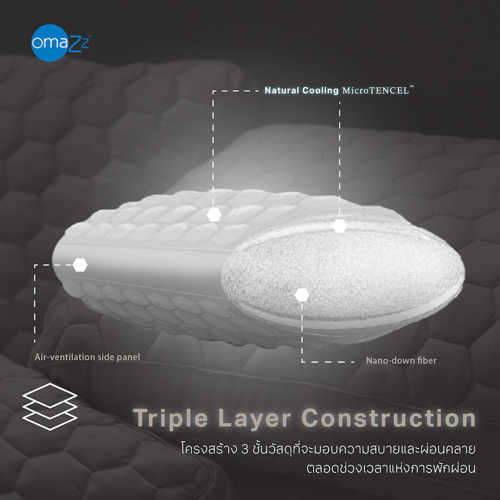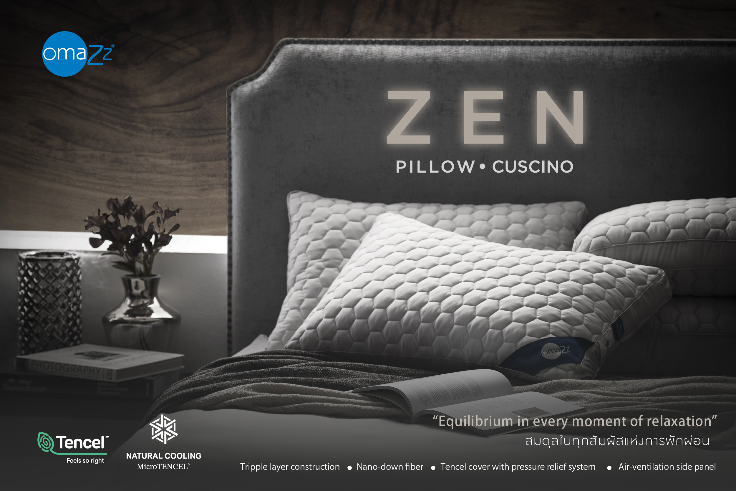 เรียบง่าย สมดุล ผ่อนคลาย – Omazz Zen Pillow ถูกออกแบบอย่างละเมียดละไมระหว่างดีไซน์ที่เรียบง่าย สู่รูปแบบฟังก์ชั่นที่ลงตัวสมดุลผ่อนคลาย โดยดีไซเนอร์ผู้เชี่ยวชาญด้านการนอน โอบกระชับศีรษะ คอ และหัวไหล่ได้สมบูรณ์แบบ