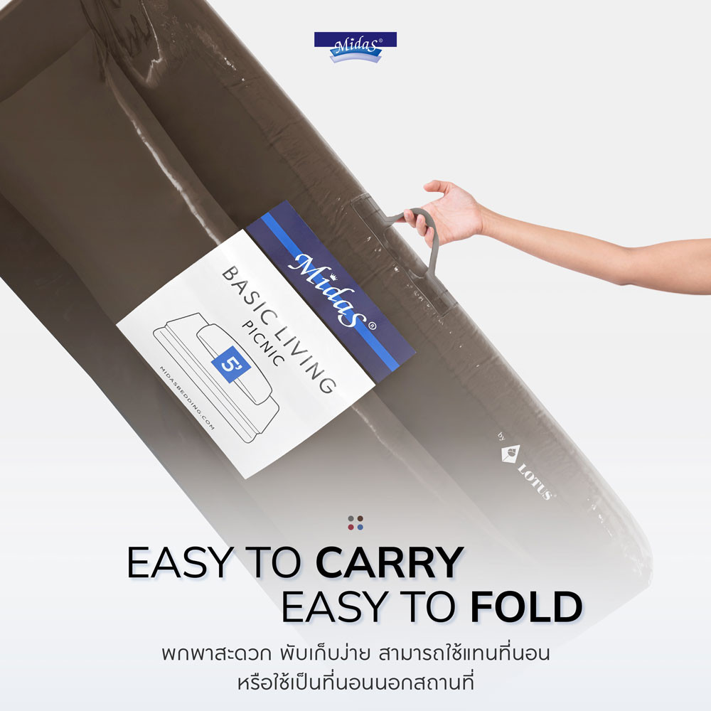 มอบความสบายบนพื้นที่พักผ่อนที่ใช่สำหรับคุณ ด้วย Midas Basic Living Topper ท็อปเปอร์ที่ใช้เนรมิตพื้นที่ภายในบ้านเป็นความผ่อนคลายสุดวิเศษ หรือพกพาไปนอกสถานที่ก็นอนสบายได้เหมือนที่นอนหลังใหญ่ นุ่มสัมผัสด้วย Firma Conjugate Pad ชั้นรองรับเส้นใยคุณภาพสูง ช่วยรองรับน้ำหนักได้อย่างมีประสิทธิภาพ มีคุณสมบัติระบายอากาศ หมดปัญหาความอับชื้นที่รบกวนการพักผ่อนให้คุณสัมผัสความปลอดโปร่งสบายมากยิ่งขึ้น
